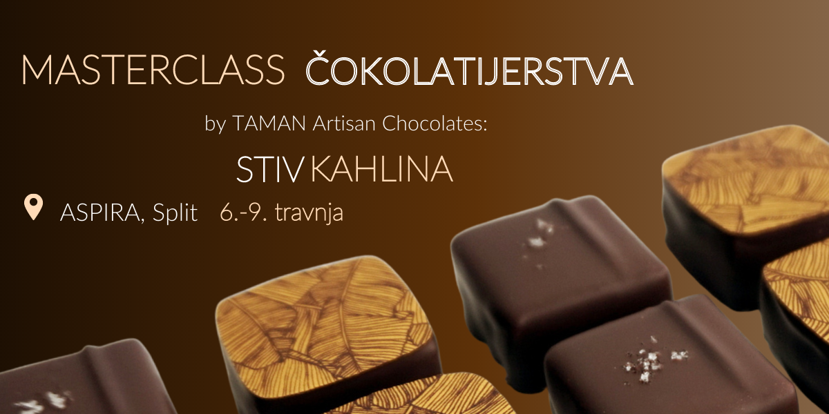 Predavač je Stiv Kahlina koji 2015.g. sa suprugom osnovao manufakturu Malo&Slatko, gdje pod brendom TAMAN Artisan Chocolates proizvodi različite čokoladne proizvode, od pralina i čokoladnih bombona, do gourmet čokolada i specialty čokolada kontroliranog podrijetla od rijetkih vrsta kakaovaca u vlastitoj bean-to-bar proizvodnji.